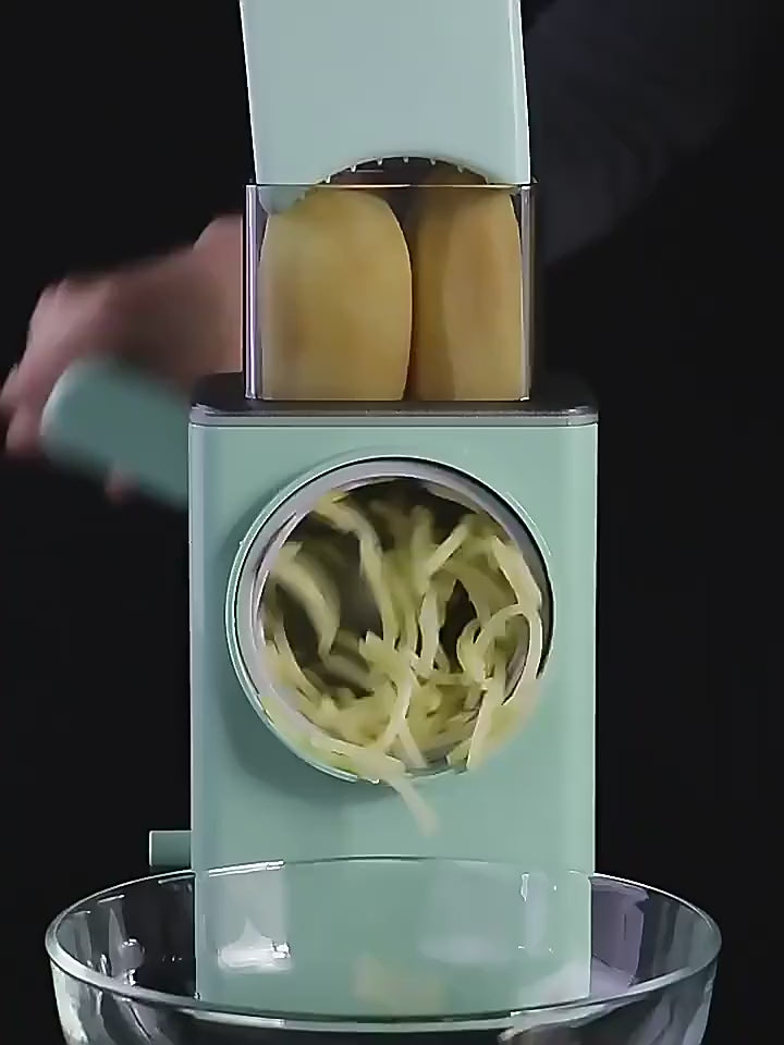 Manual Vegetable Grater for Kitchen, Multifunctional Rotary Drum Vegetables Cutter Grater & Slicer with 3 Sets Interchangeable Stainless Steel Blades: Speed up meal prep with this hand-crank rotary grater. Swap among three stainless-steel drums to shred, grate, or slice veggies, cheese, nuts, and more—perfect for salads, stir-fries, toppings, and meal prep. more