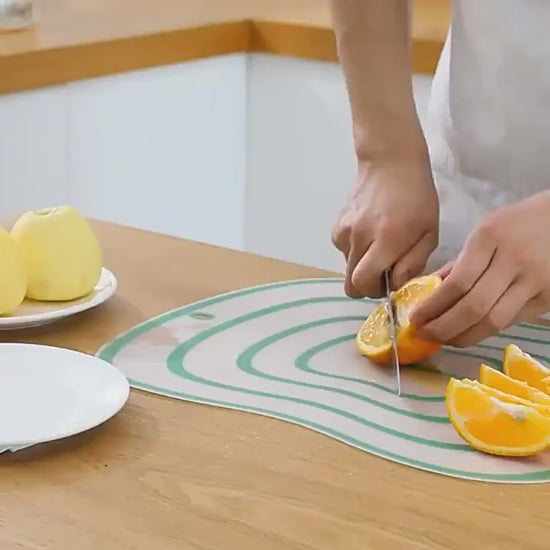 Bend, chop, and pour with ease. This flexible, semi-transparent cutting mat keeps prep tidy and lets you funnel ingredients straight into the pan. Color variants help you separate tasks (veg/meat/fruit) to reduce cross-contamination. more