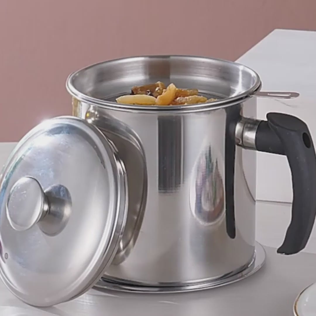 Stainless Steel Oil Pot With Filter & Lid